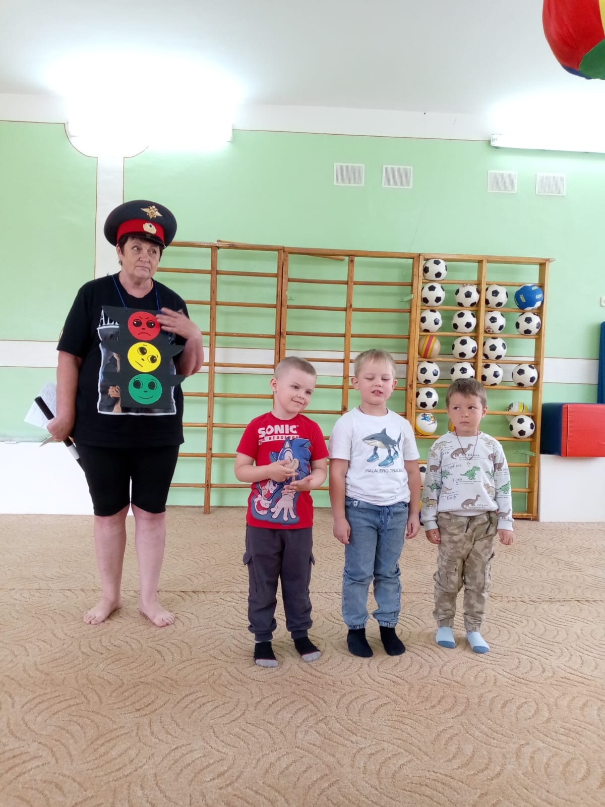 В игровой форме вместе с гостем познакомились с дорожными знаками, с правилами дорожного движения. Ребята с удовольствием отгадывали загадки, вспомнили, что означает каждый сигнал светофора.